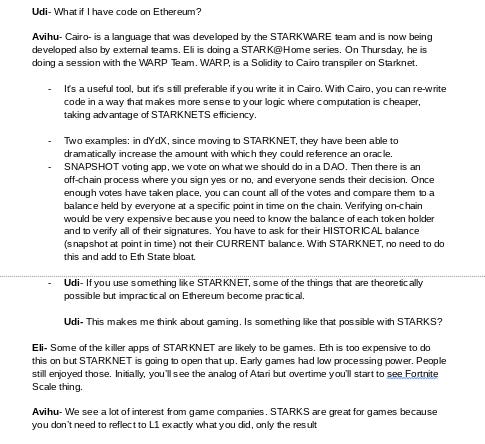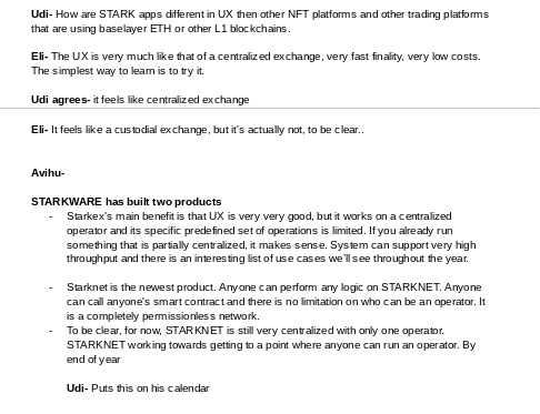 Notes on Udi Wertheimer’s discussion with StarkWare team.